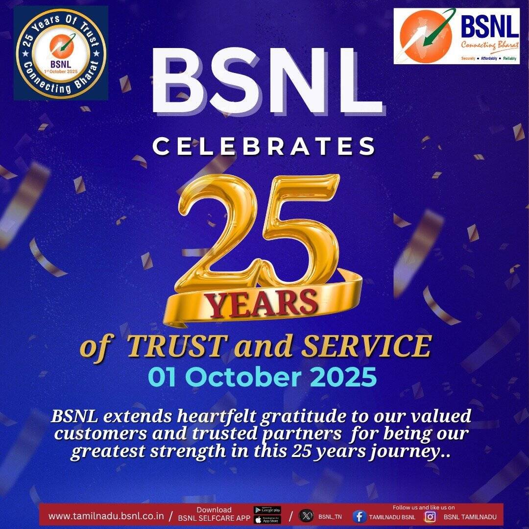 This journey of 25 years has been made possible by the relentless efforts of BSNL employees, the trust of our valued customers, and the constant support of the Government of India.