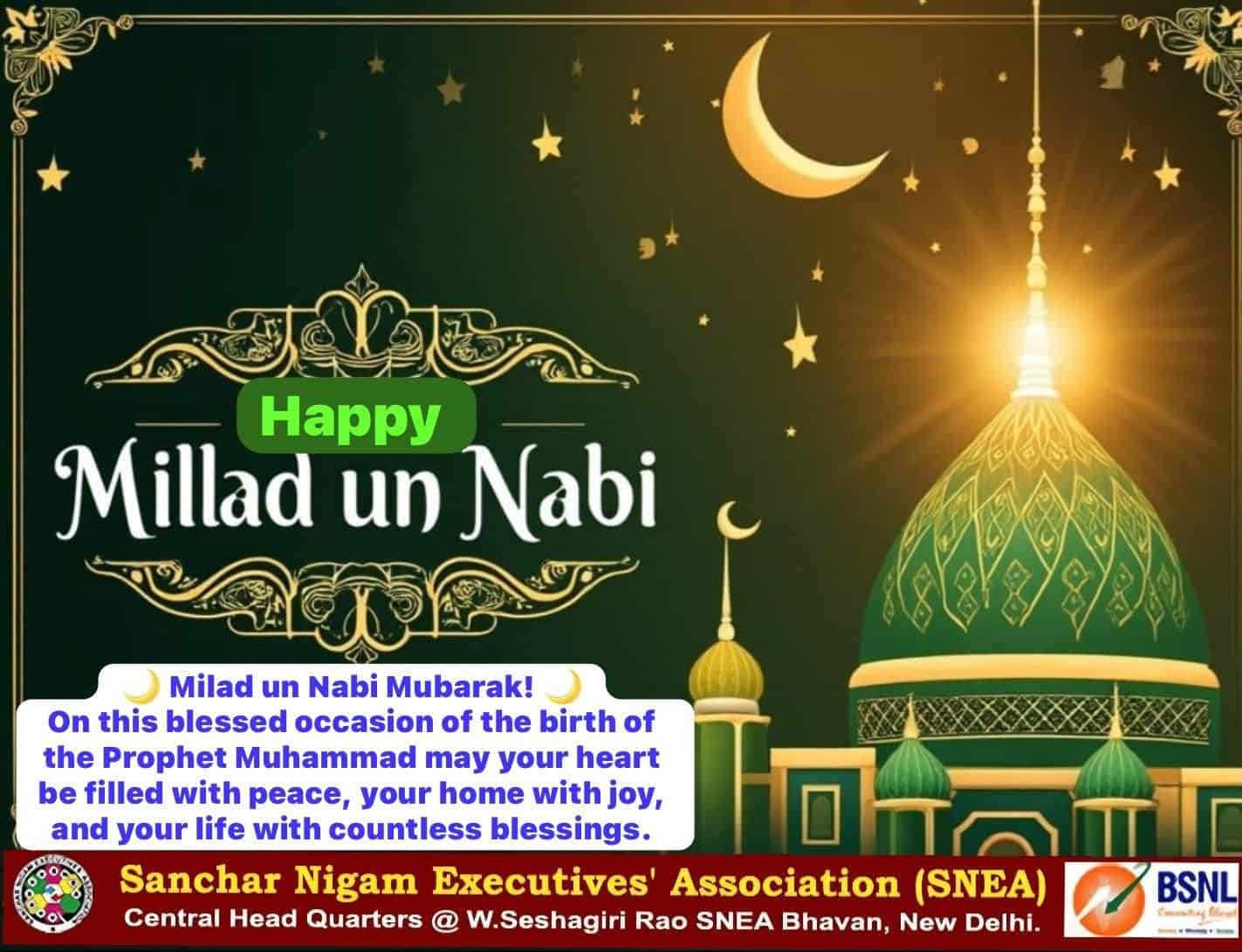 Happy Eid Un Milad 2025 September 5, 2025 National events 34 Views Last Updated: September 6, 2025 SNEA CHQ September 5, 2025 Previous Article Happy Teachers day : Next Article Odisha State Government makes BSNL services compulsory in all Government Offices: